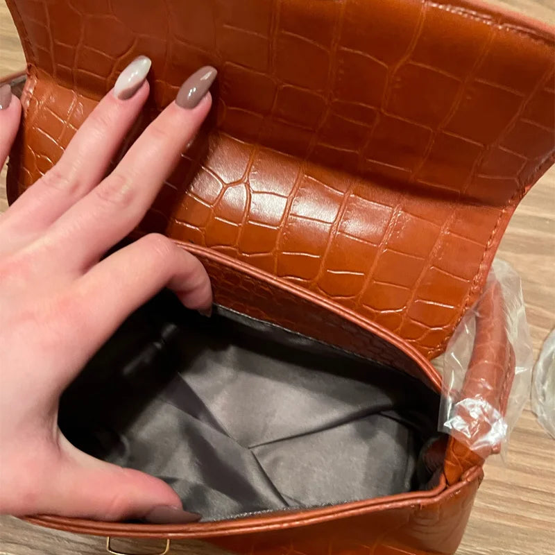 Elevate your casual style with this retro underarm handbag featuring a stone pattern design. Made of high-quality leather, this shoulder bag is perfect for everyday use.