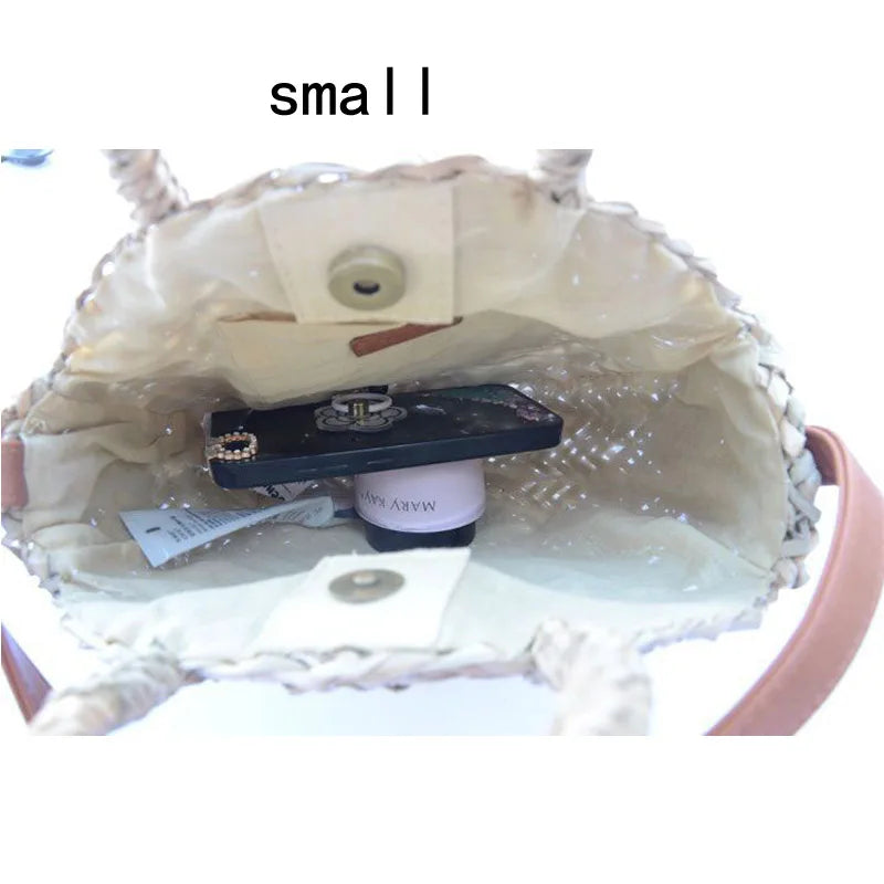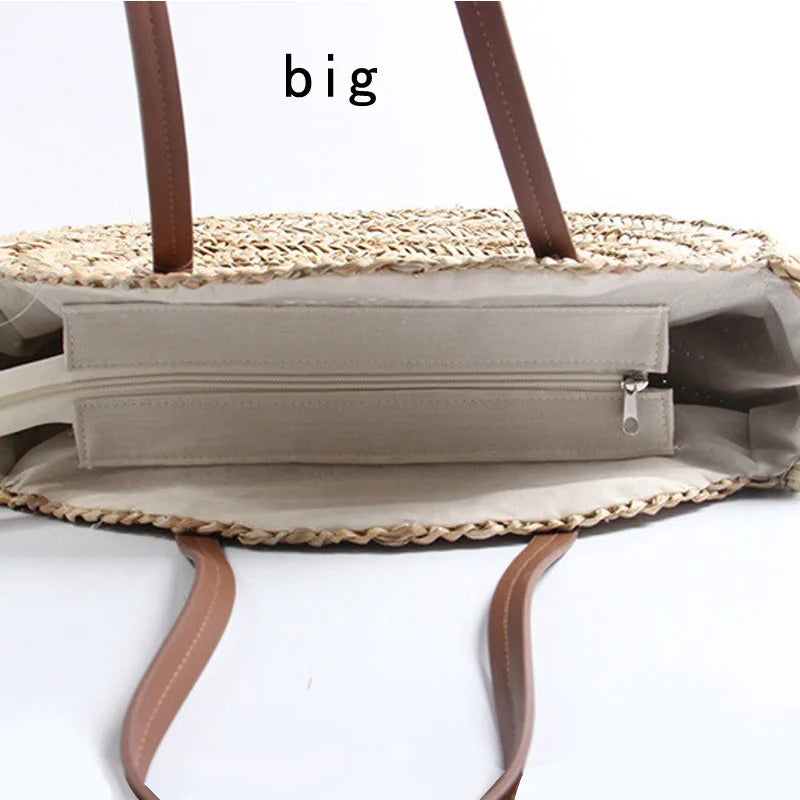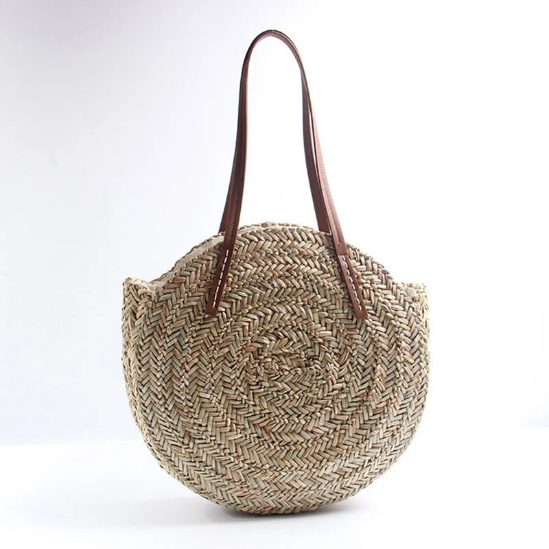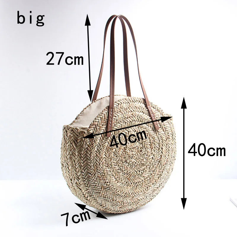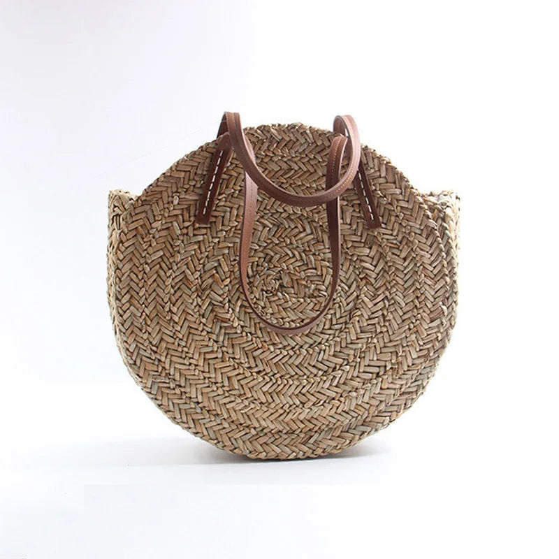 Straw Beach Bag Round Woven Handbag for Holiday