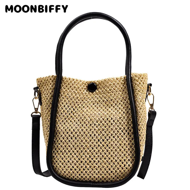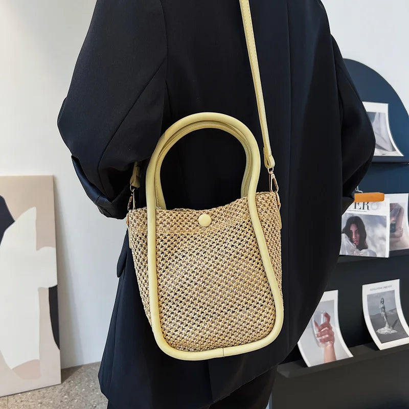 Straw Bucket Bag Large Capacity Ladies Handbag Shoulder Crossbody