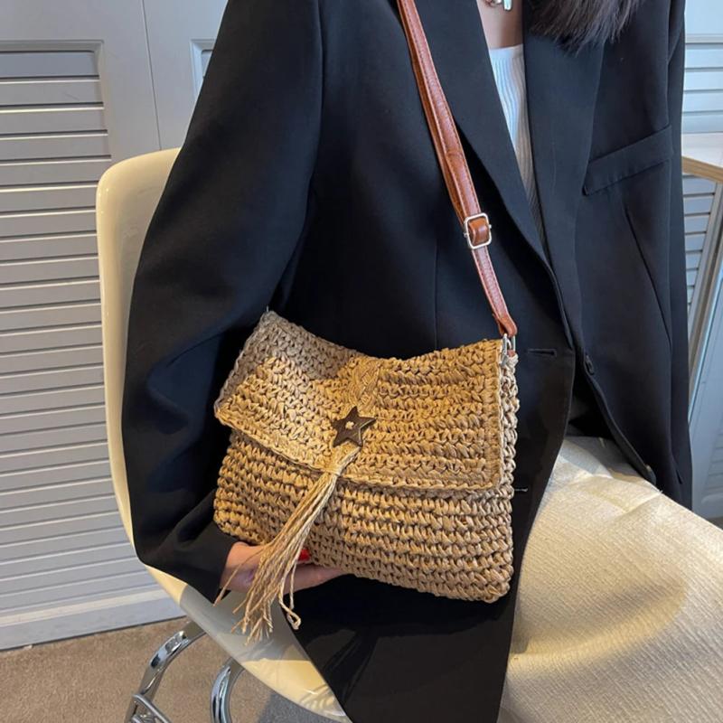 Straw Shoulder Bag Tassel Star Hand Woven Crossbody Small Subaxillary Clutch