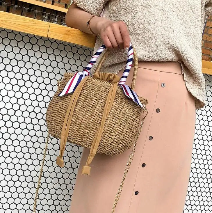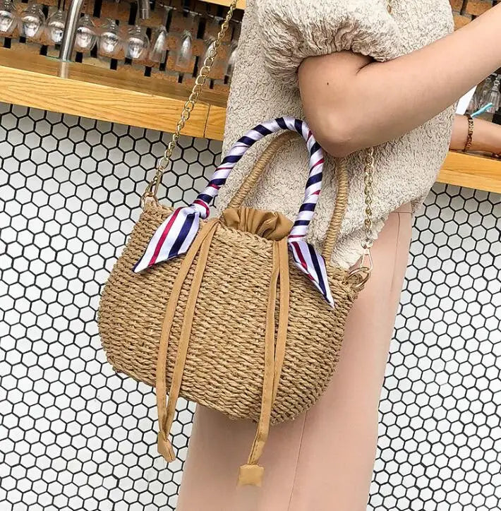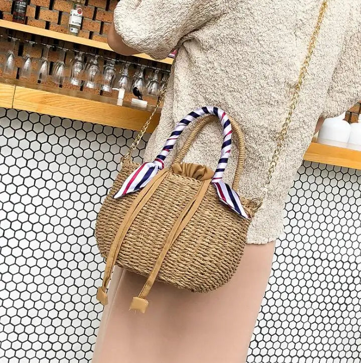 Straw Woven Beach Handbag Bucket One Shoulder Messenger Bag