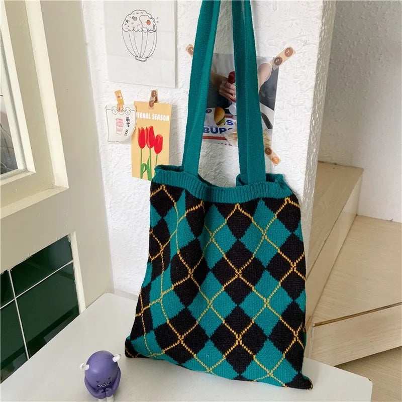 Student Knitting Totes Wool Shoulder Bag Casual Handbag