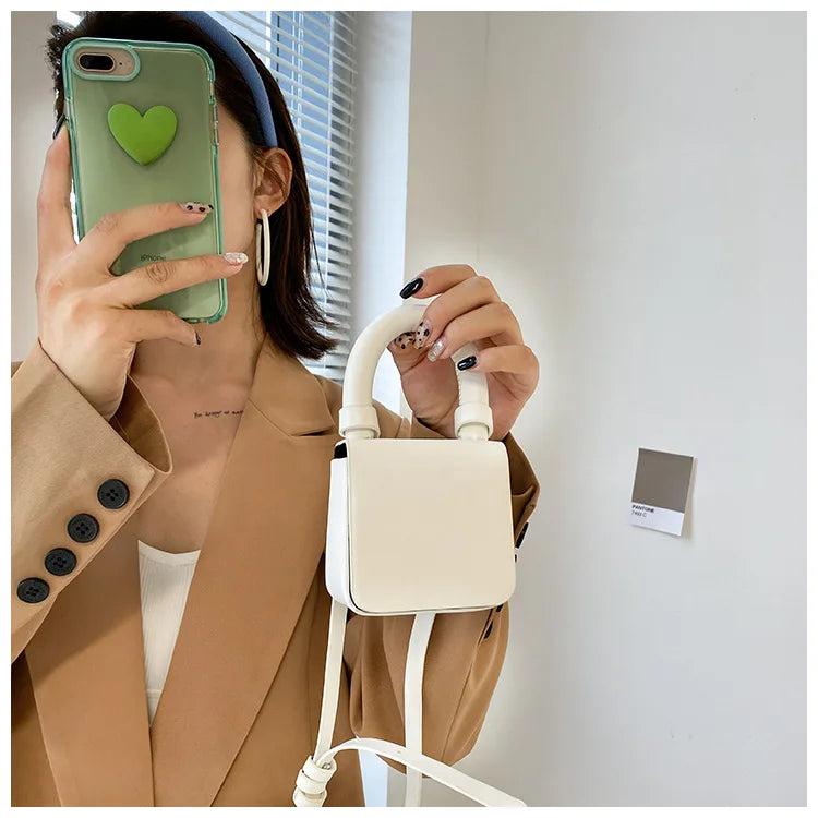 This small MINI square portable headphone box in stylish candy colors is perfect for carrying your headphones. The bag is made of high-quality leather with a messenger shoulder design.