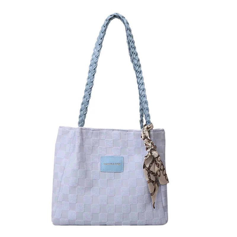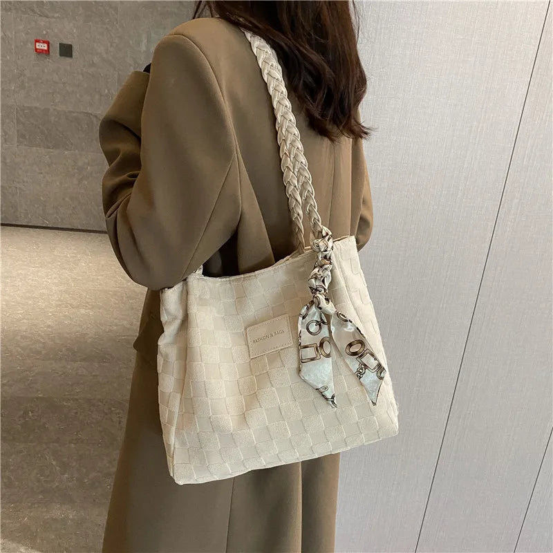 Stylish Canvas Shoulder Bag with Scarf Detail