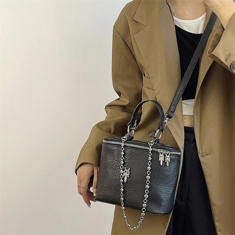 Elevate your style with this fashionable and high-quality chain handbag. Perfect for any occasion, this mini bucket bag adds a touch of class to your look.