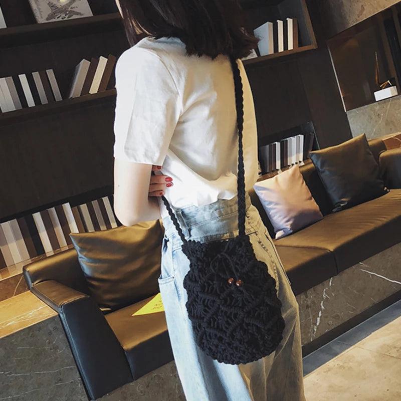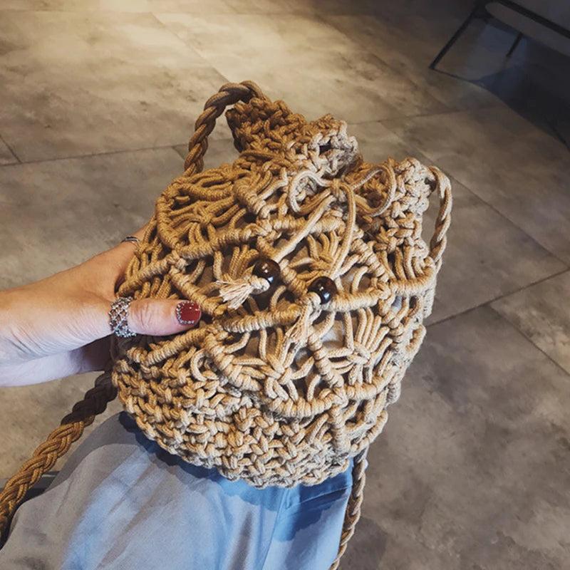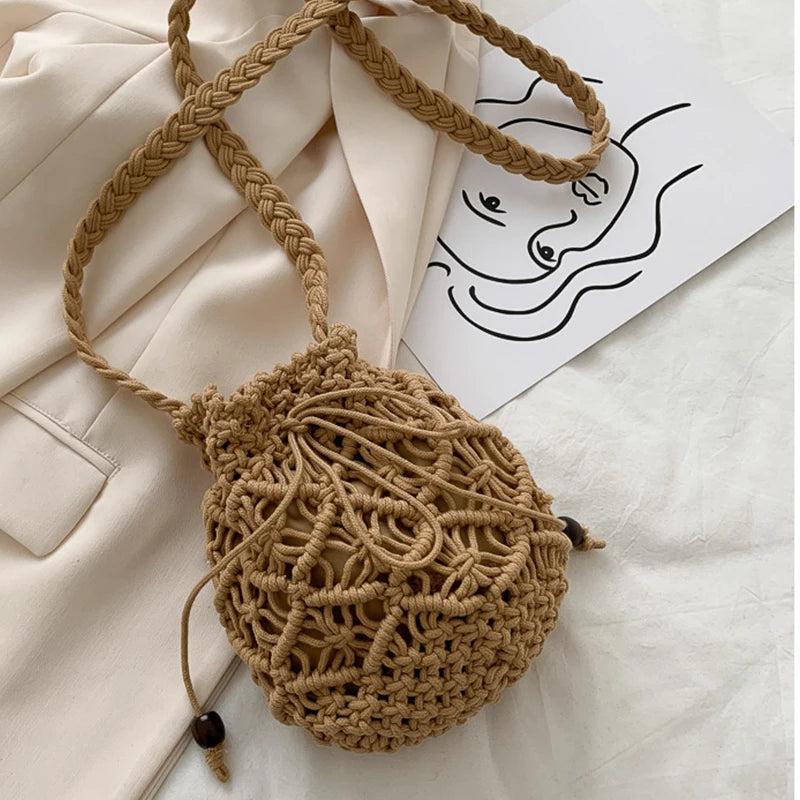 Summer Bucket Crossbody Shoulder Bags Cotton Linen Travel Beach Bag Purse