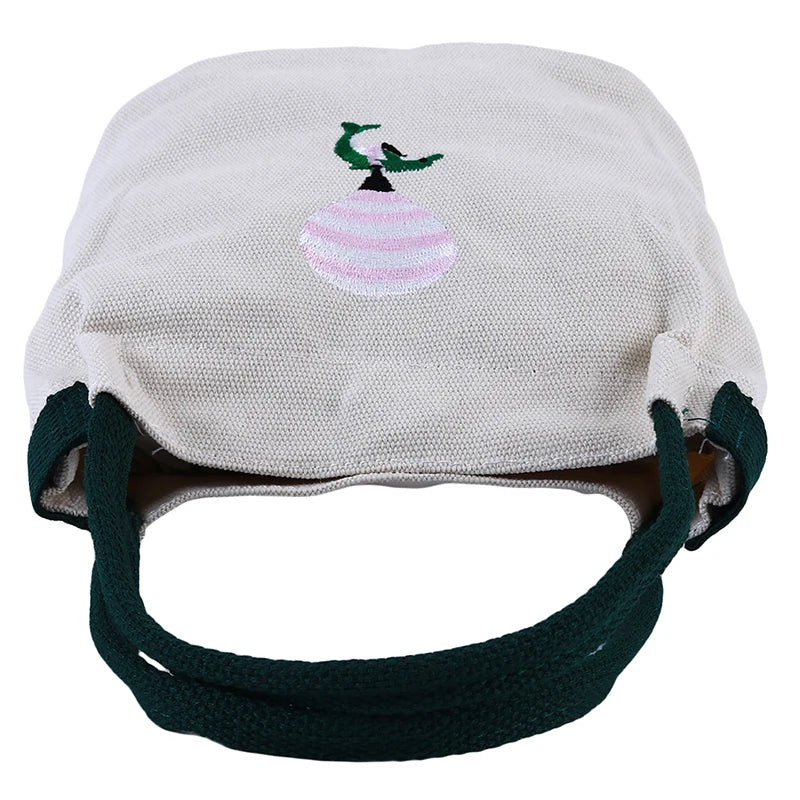 Summer Canvas Shoulder Bag Embroidered Zipper Bucket Bag