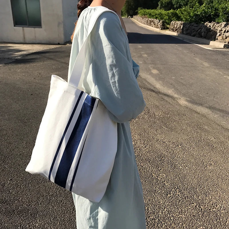 Summer Canvas Shoulder Bag Handbag Art Striped Bag