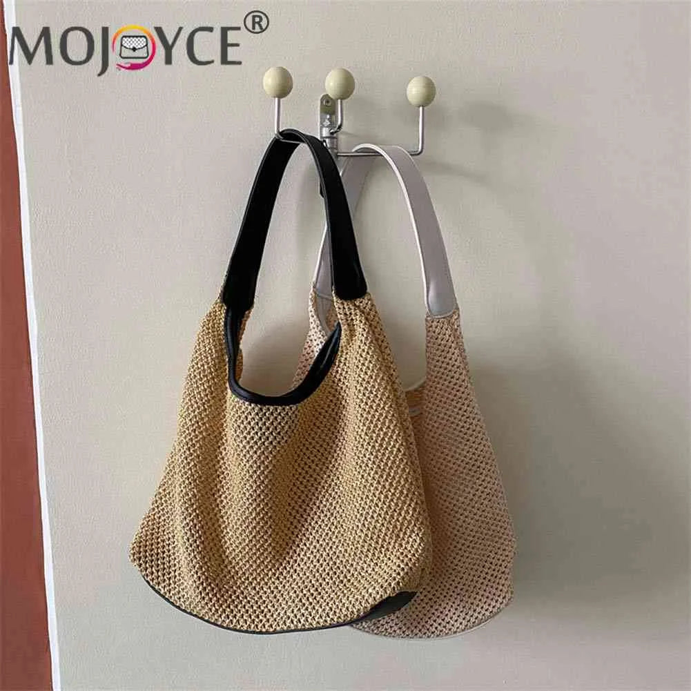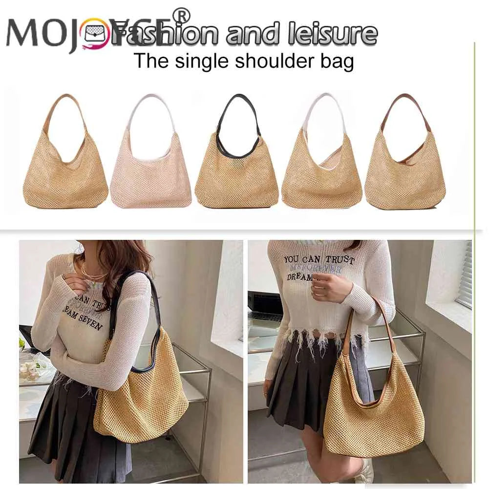 Stay stylish with this large woven straw mesh handbag that's perfect for summer outings and gatherings. It features a square design and a comfortable crossbody strap for easy carrying.