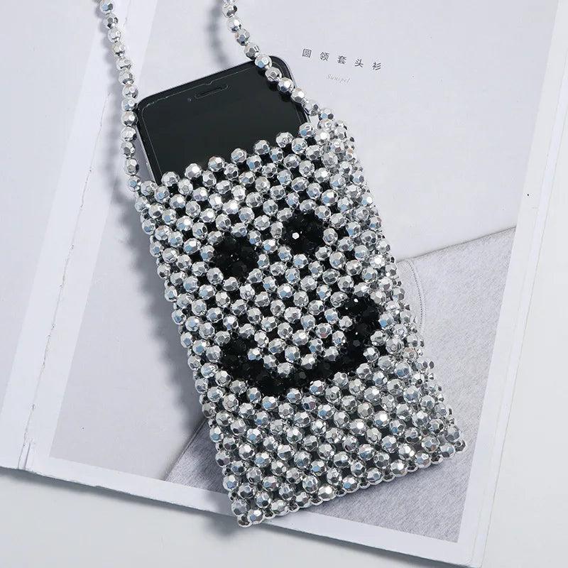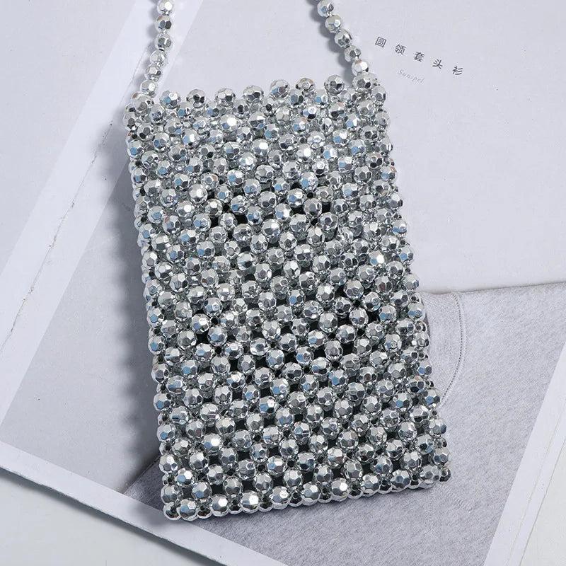 Stay stylish with this versatile pearl crossbody bag that can also function as a coin purse or woven handbag.