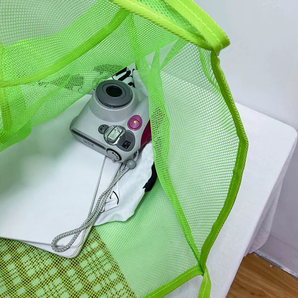 Summer Mesh Shopping Handbag Travel Clutch Multifunctional Bag