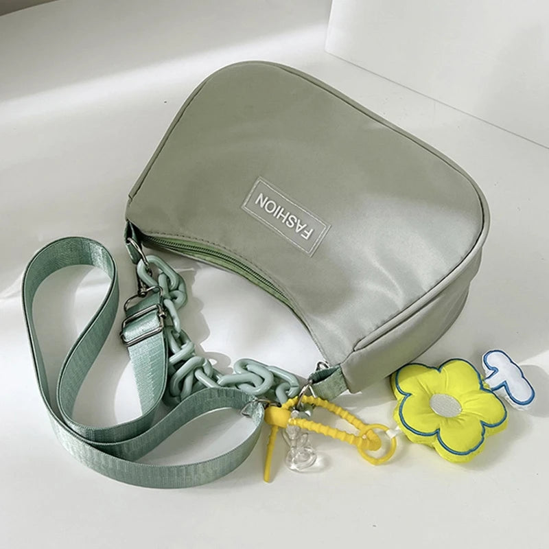 This stylish shoulder bag features a large capacity design, perfect for carrying all your essentials. It comes with a chic acrylic chain pendant for added charm.