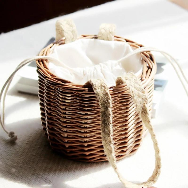 This rural wind woven draw belt handbag is perfect for summer outings. Made with plaited details and a drawstring closure, this straw bag exudes a holiday vibe.