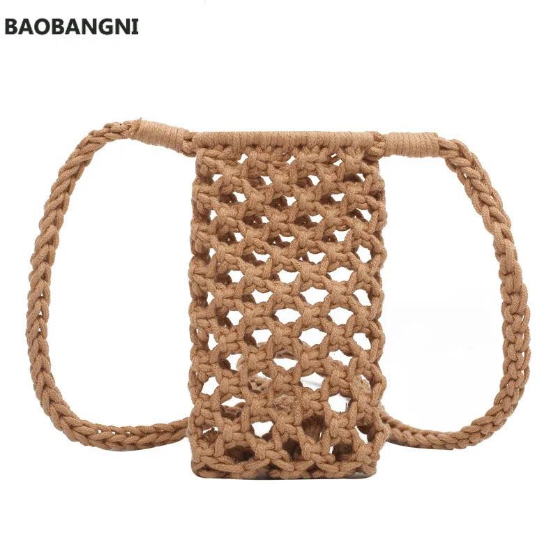 Enjoy your beach holiday with this stylish straw crossbody bag. Perfect for summer, it features a hollow out design and is ideal for carrying your phone and essentials while traveling.