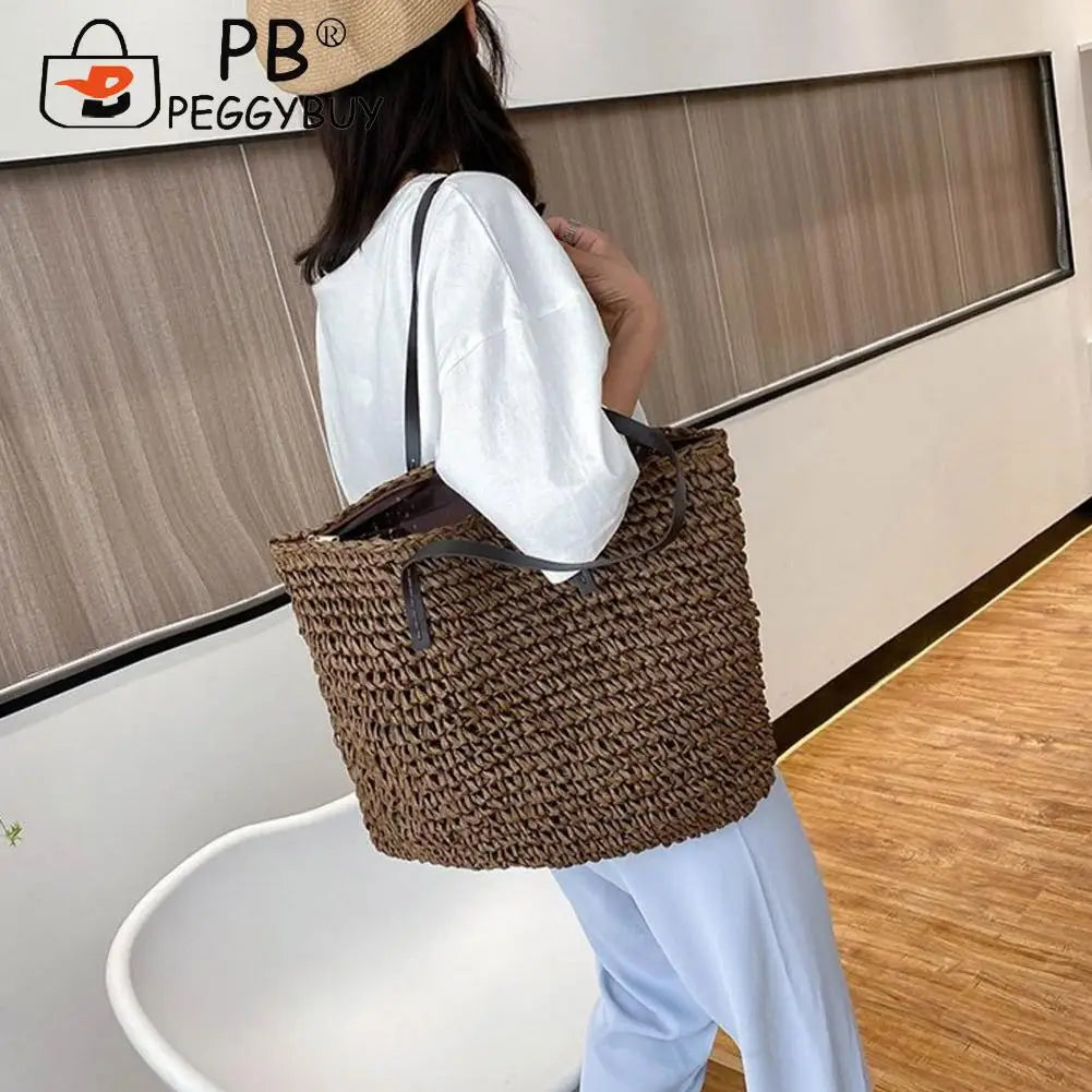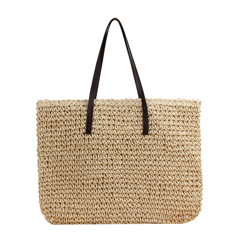 This portable bag is perfect for your summer vacation, made of straw rattan with a large capacity. It can be used as a handbag, tote, or clutch for beach outings.