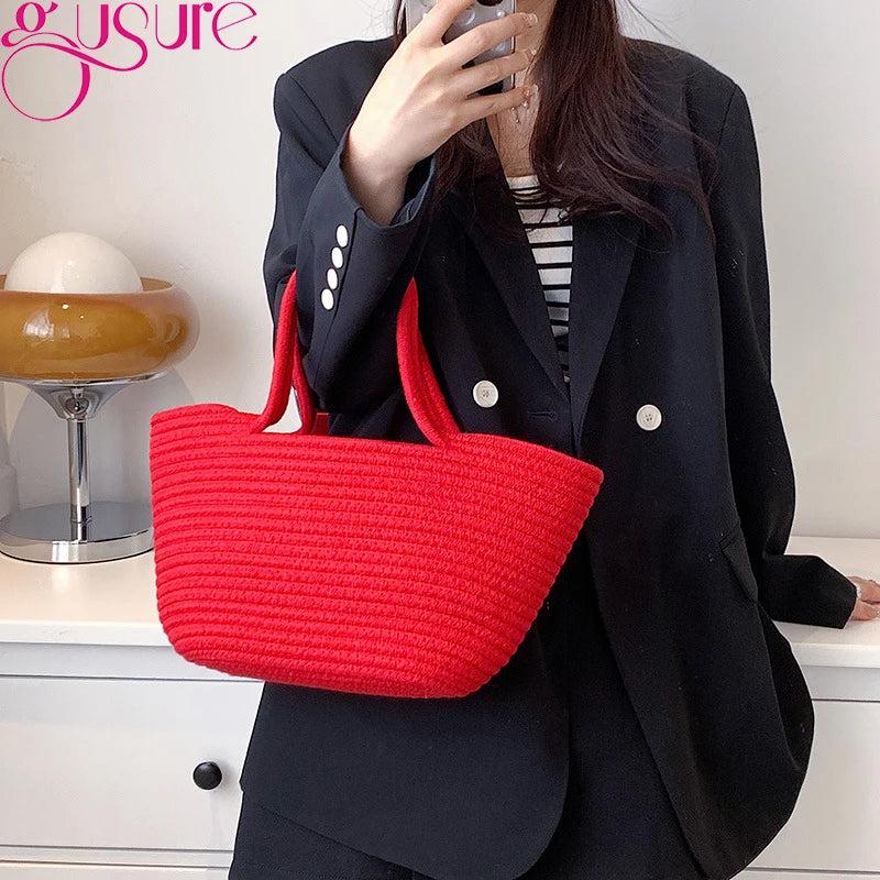 Get ready for summer with this stylish woven shoulder bag made of straw. Perfect for the beach or travel, this top handle handbag is a must-have!