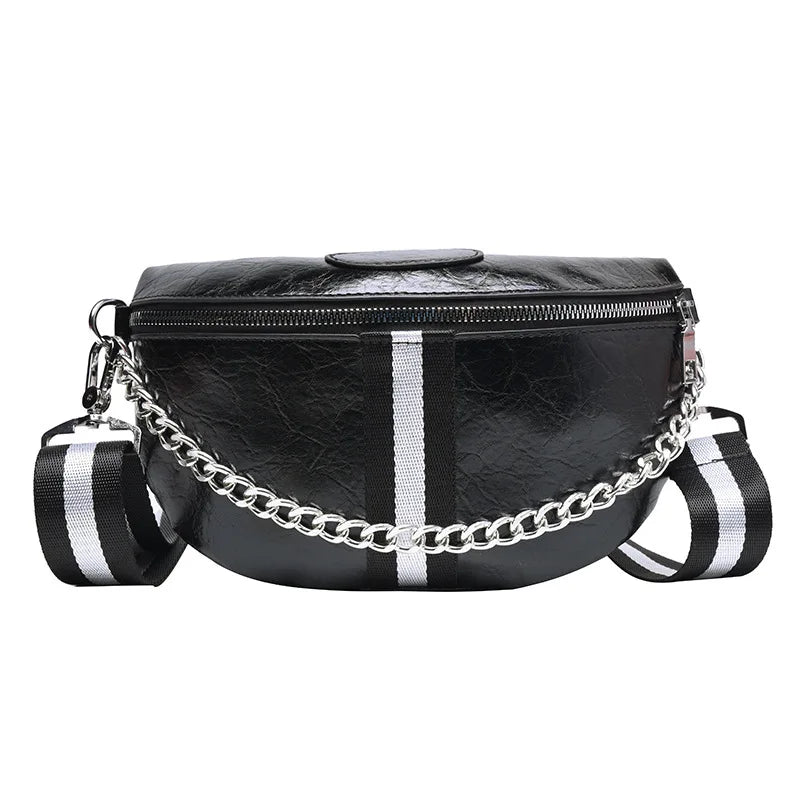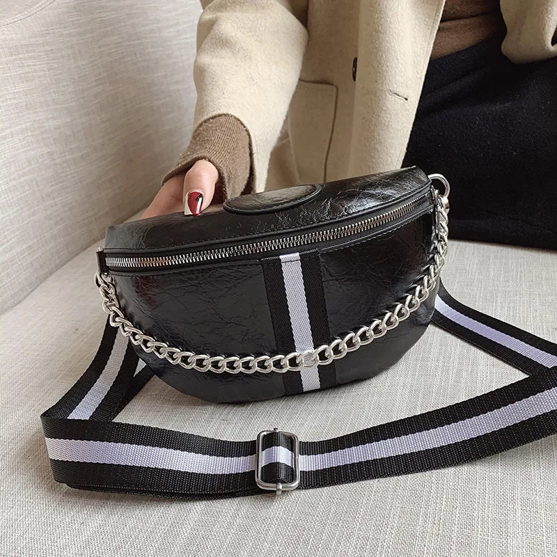 Thick Chain Lady Waist Bag Leather Chest Bags Shoulder Messenger Handbag