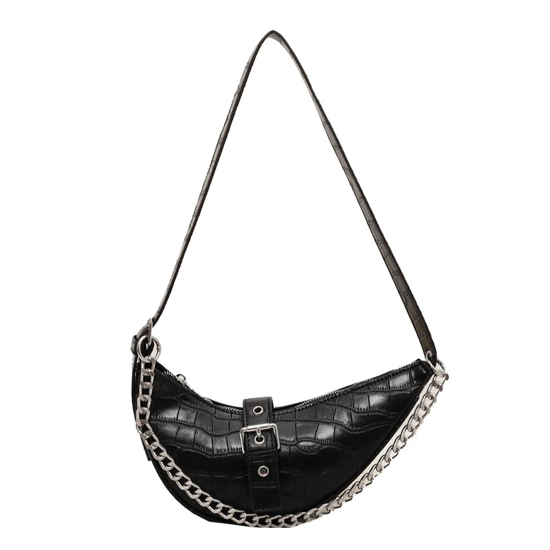 Thick Chain Leather Saddle Handbags Crossbody Bag