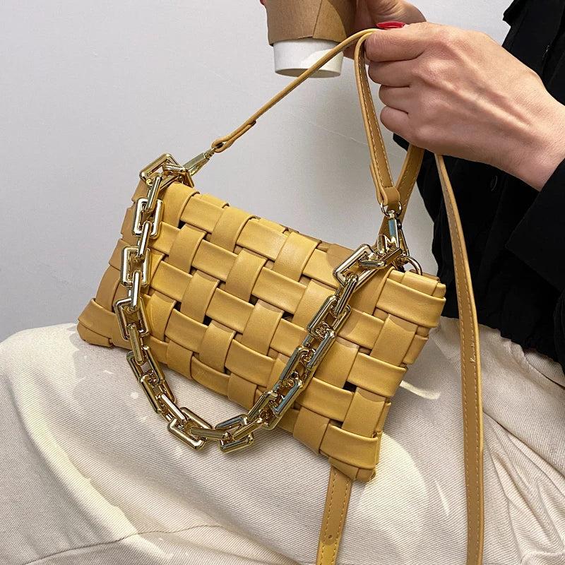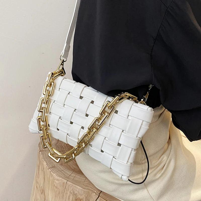 Elegant and stylish PU leather crossbody bag with classic thick chain design. Perfect for everyday use or special occasions.