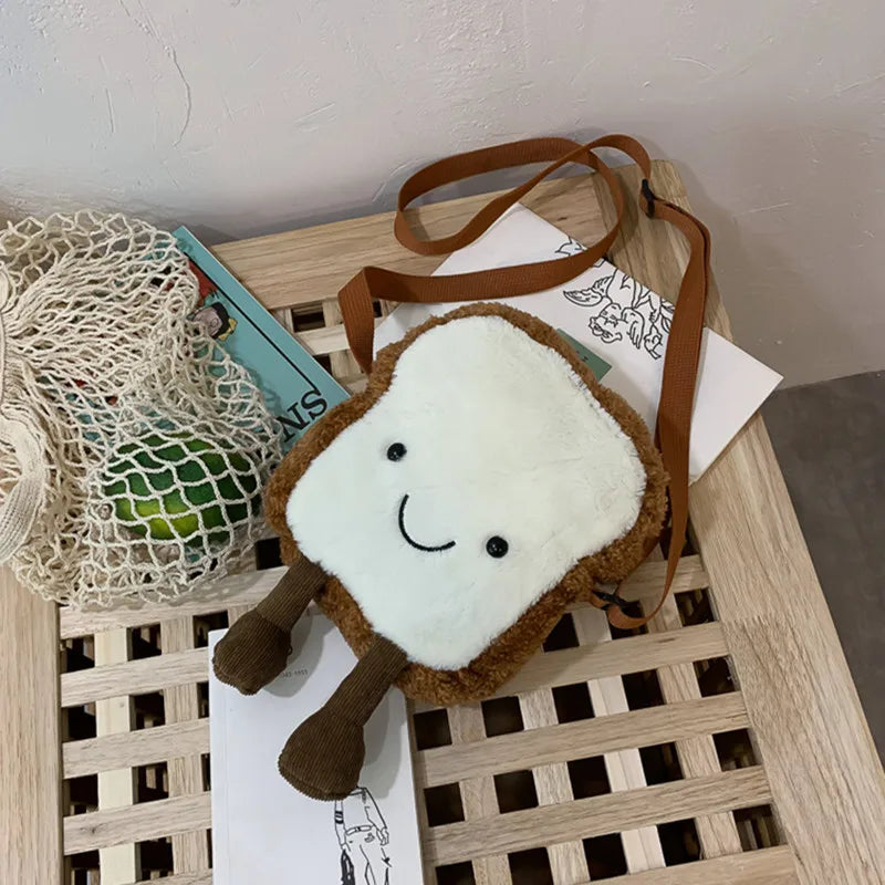 Add a touch of humor to your outfit with this shoulder crossbody bag shaped like a slice of toast bread. This plush bag is perfect for those who love quirky accessories.