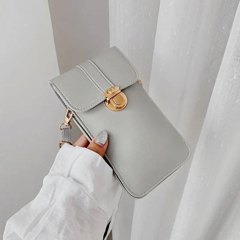 This compact bag is designed to hold your mobile phone, wallet, and other essentials. It features a touch screen window for easy access and a stylish design.