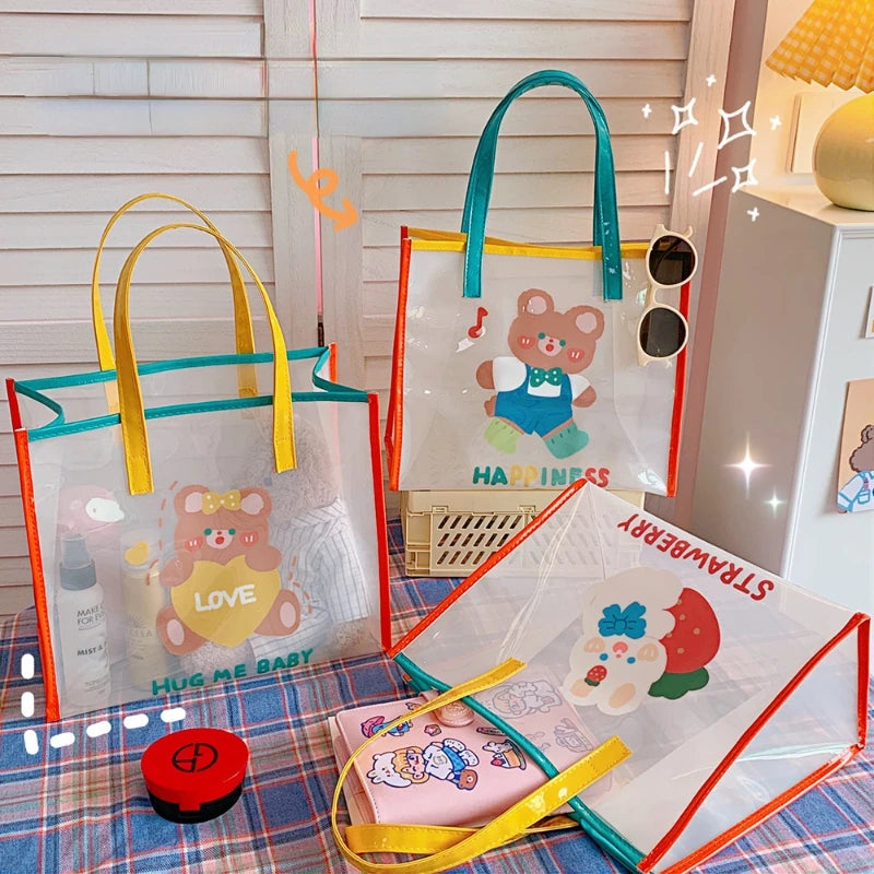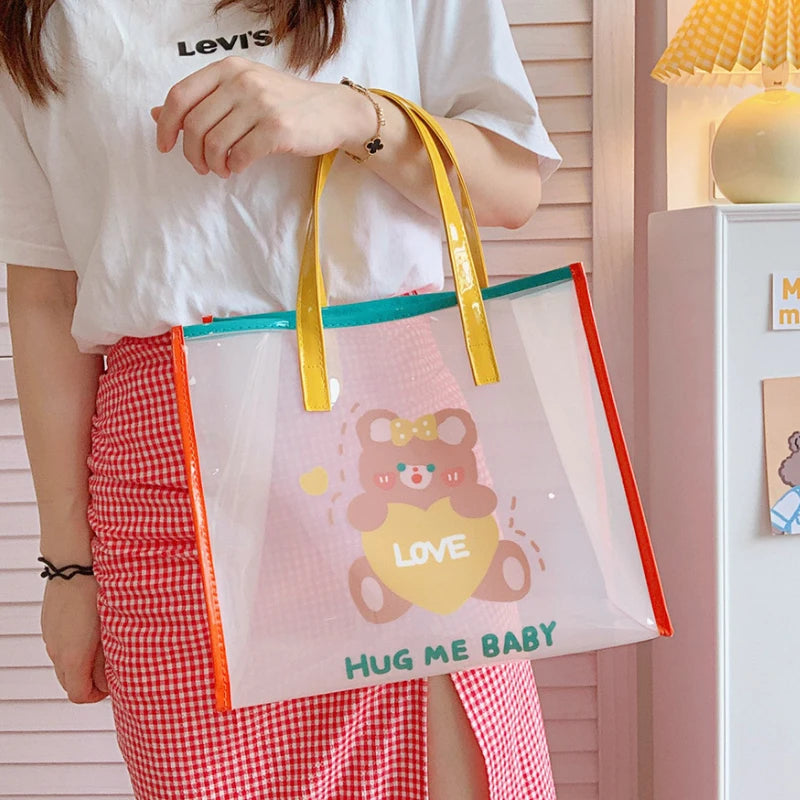This cute and spacious jelly bag is perfect for summer travels. Featuring cartoon bear and rabbit design, it's a lovely accessory for girls.