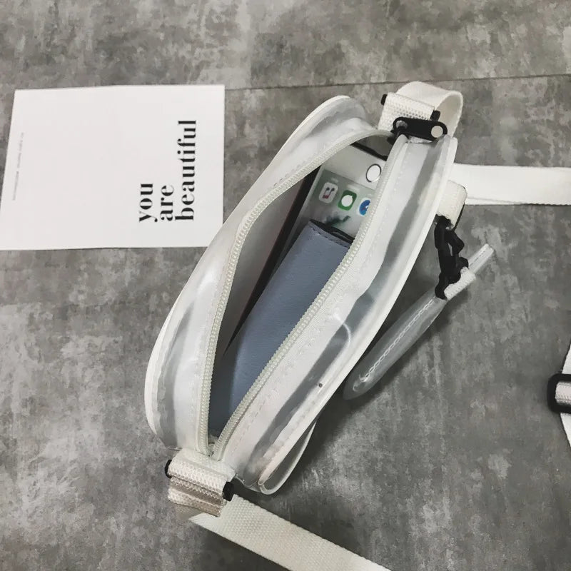Stay stylish and trendy with this summer messenger bag made of transparent PVC material. The small size makes it perfect for carrying your essentials.