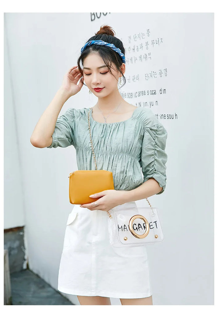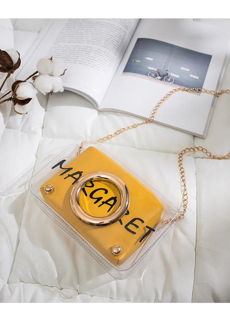 Stay stylish and trendy with this clear shoulder crossbody bag made of PU and PVC. Perfect for casual outings, it features a chain strap for added flair.