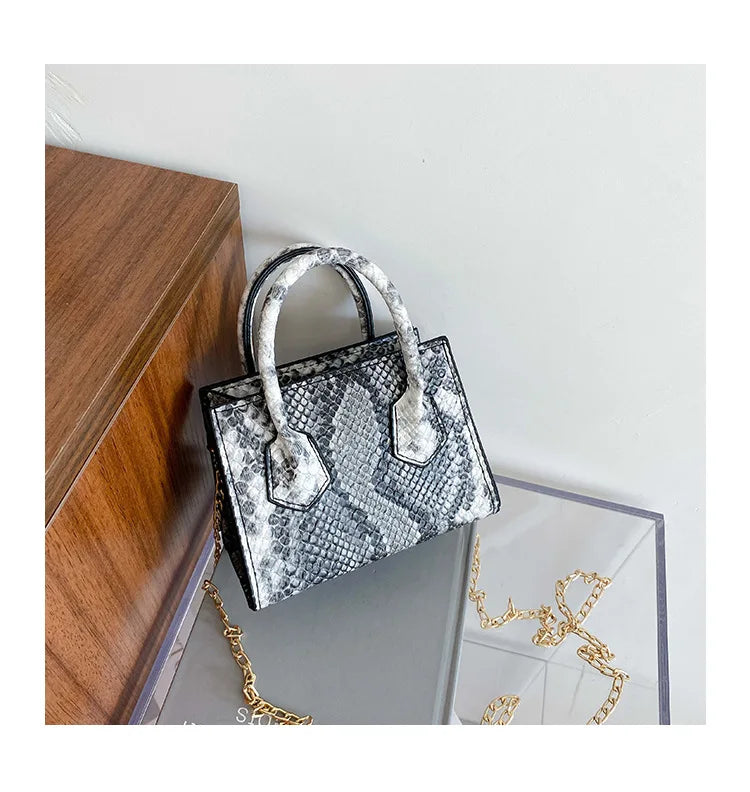 Stay stylish with this mini European and American trend snake print handbag. Perfect for adding a touch of sophistication to your outfit.