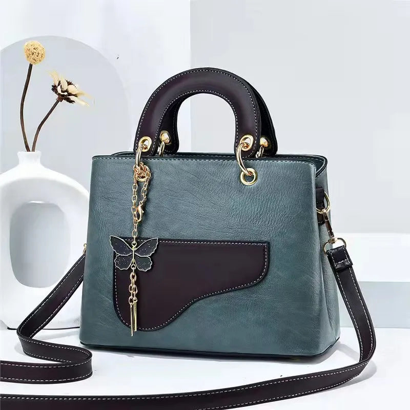 This female bag features a trendy western style with a versatile design. The one-shoulder messenger handbag is perfect for ladies looking for a fashionable and practical accessory.