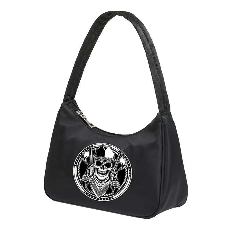 Stay stylish with this Harajuku shoulder hobo bag featuring a unique skull print design. Ideal for everyday use.