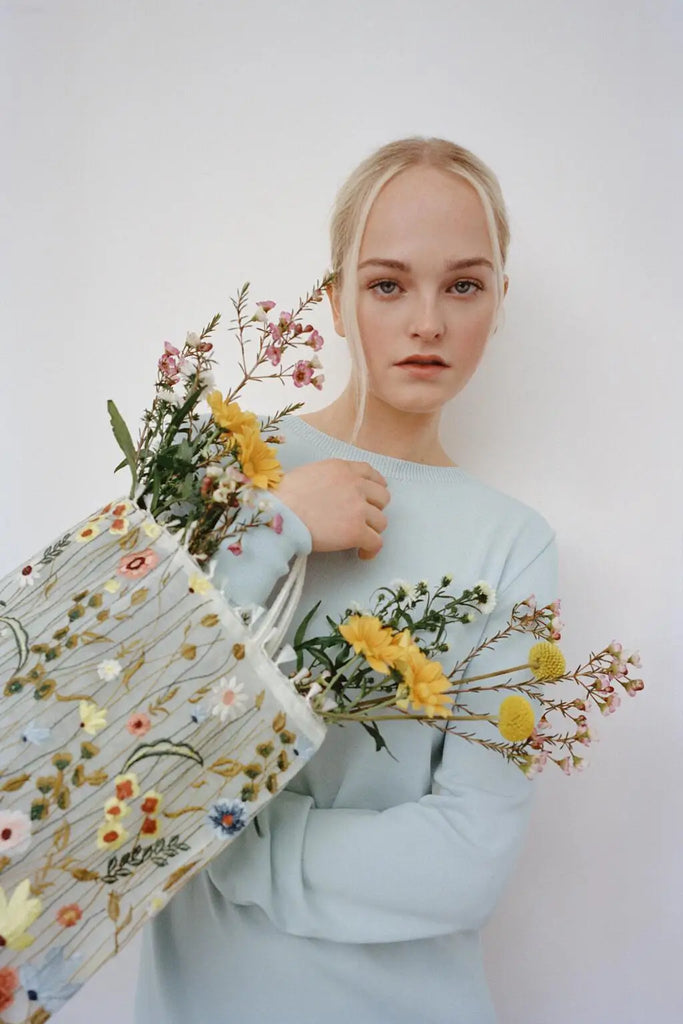 This elegant velvet handbag features exquisite embroidery of flowers, making it a stylish and unique accessory for any outfit.