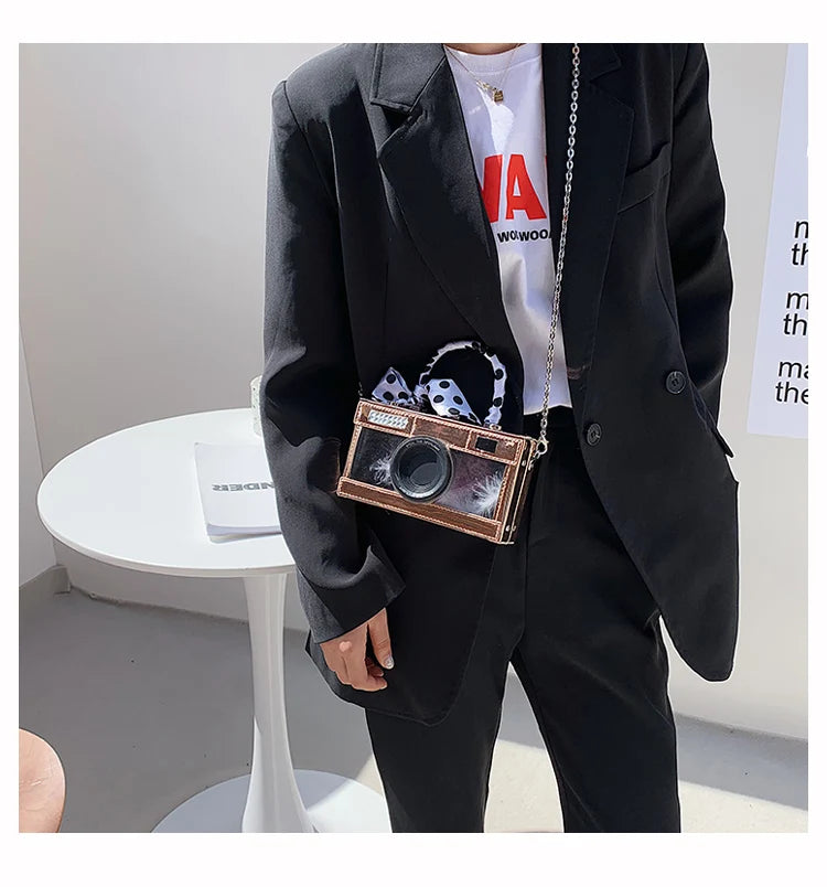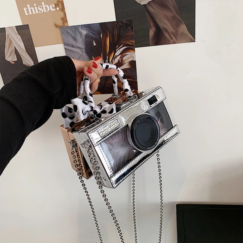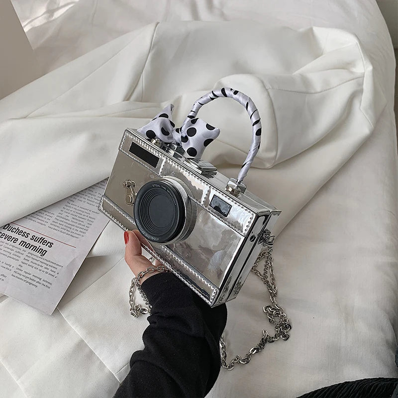 Vintage Camera Style Ladies Party Handbag with Chain Shoulder Bag