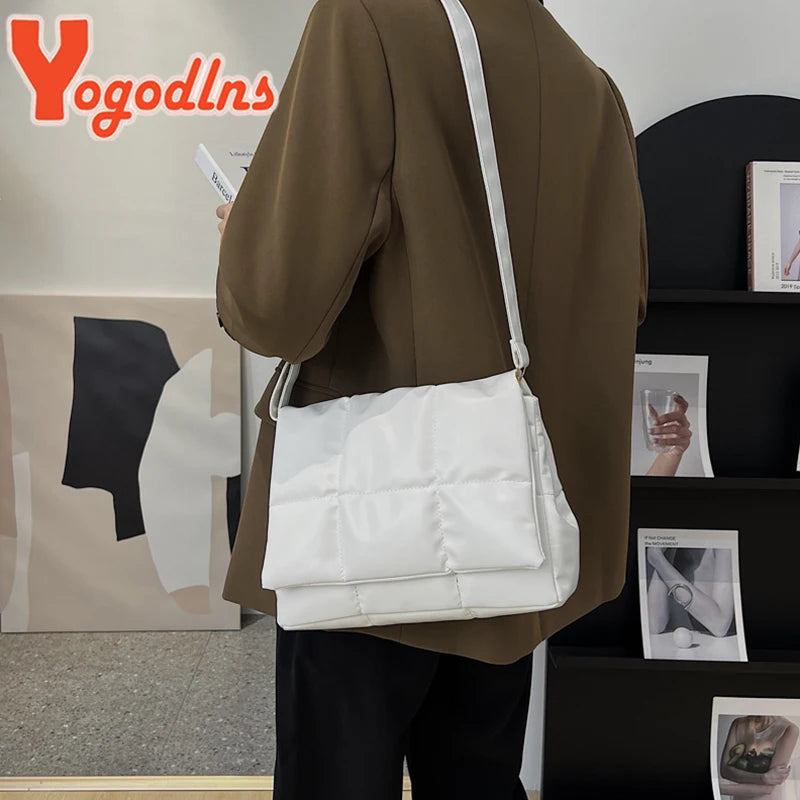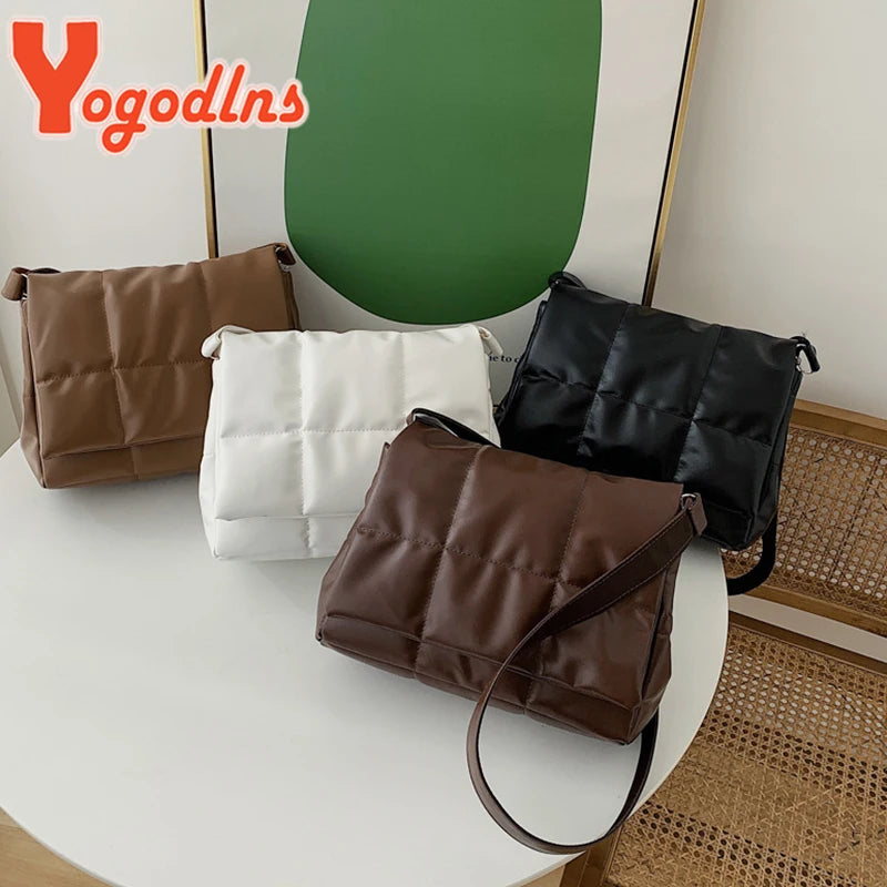 This stylish shoulder bag features an embroidered plaid design, made from soft leather. It can be worn as a crossbody or armpit handbag, perfect for daily use.