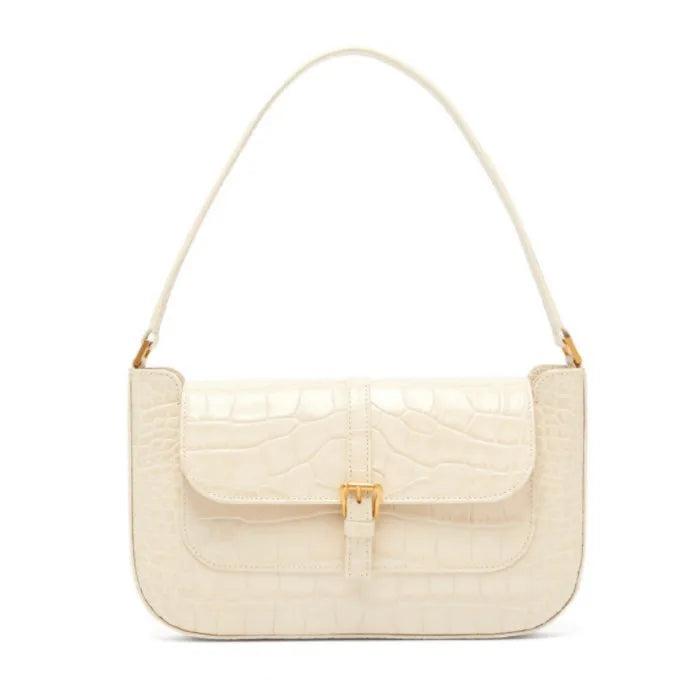 This vintage European handbag features a crocodile pattern design that adds elegance to your outfit. It can be worn as a shoulder or underarm bag, making it perfect for commuting or everyday use.