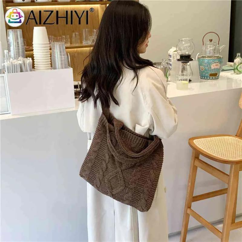 Vintage Knitted Crossbody Bag Large Capacity Solid Handbag