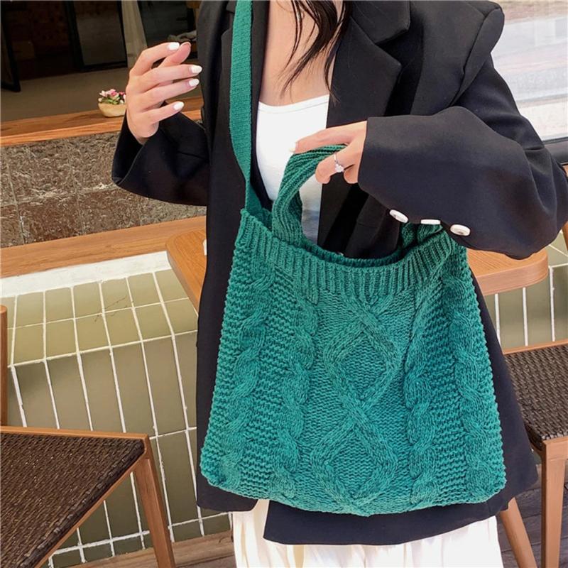 Vintage Knitted Shoulder Bag Large Capacity Crossbody Purse Handbag