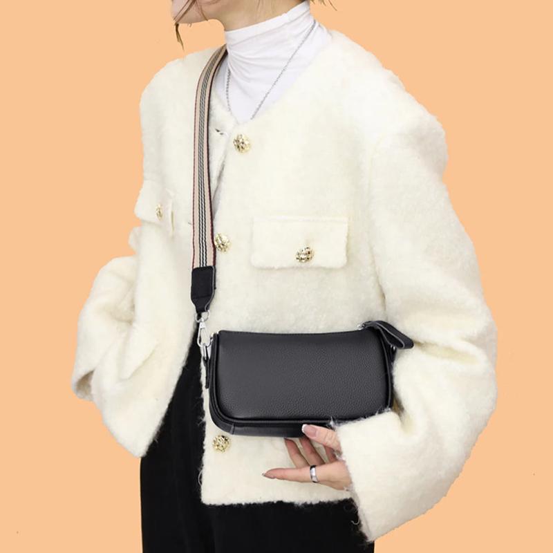 This solid crossbody bag is made of high-quality leather and features a soft texture. It is perfect for everyday use and adds a touch of vintage charm to your outfit.