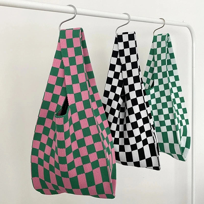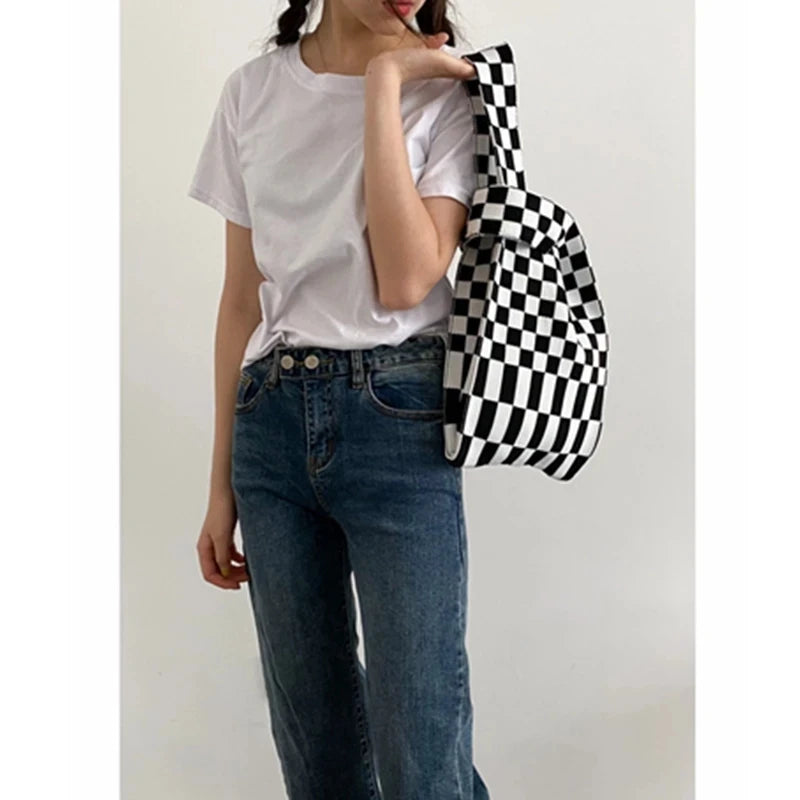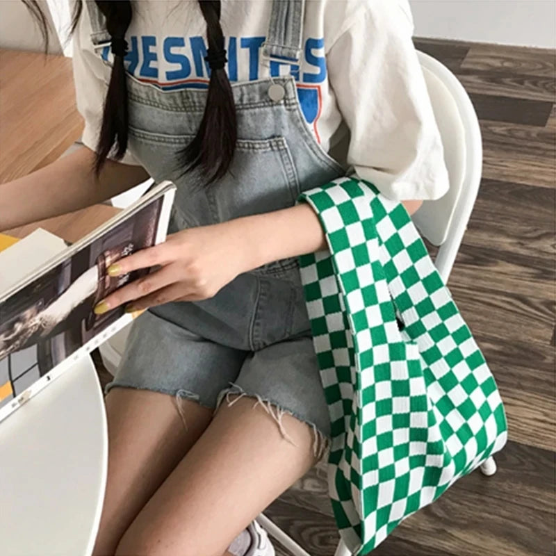 Vintage Plaid Woolen Knitting Shoulder Wrist Bag