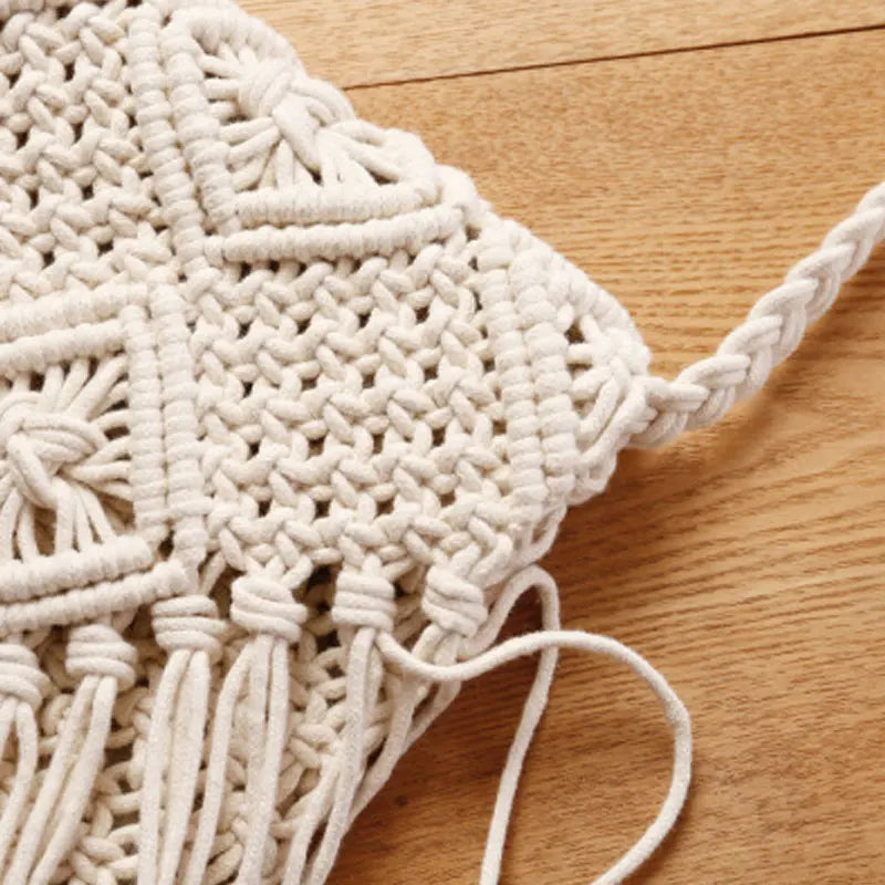 This handbag is perfect for summer beach outings. The square shape and tassel detail give it a unique vintage look.
