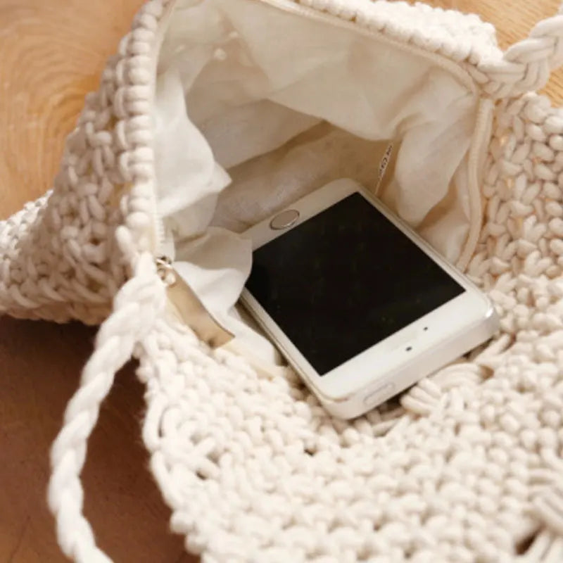 Vintage Rattan Woven Handbag Tassel Messenger Shoulder Bag