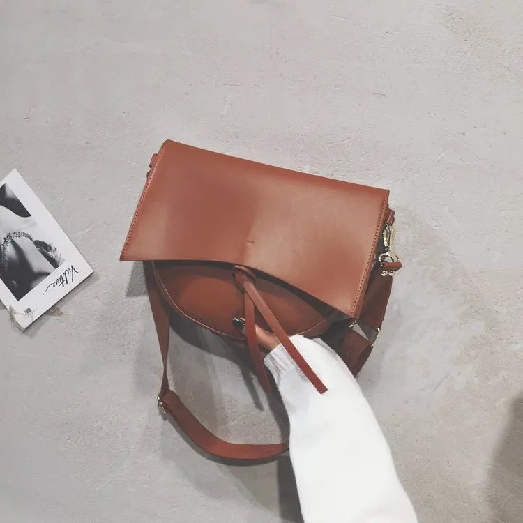 Vintage saddle bag women shoulder pack wide strap large capacity lady handbag