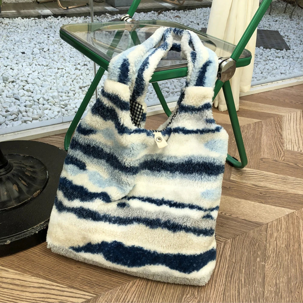 Vintage Shoulder Bag Ink Pattern Ladies Handbag Soft Fluffy Tote