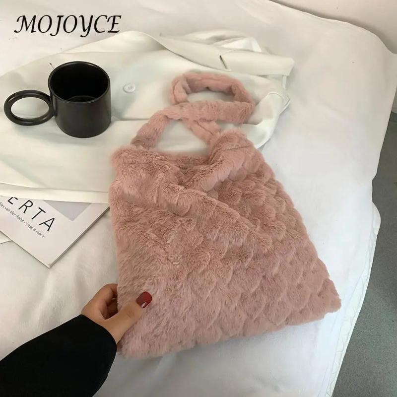 Vintage Soft Plush Heart Pattern Handbag Large Capacity Shoulder Bag
