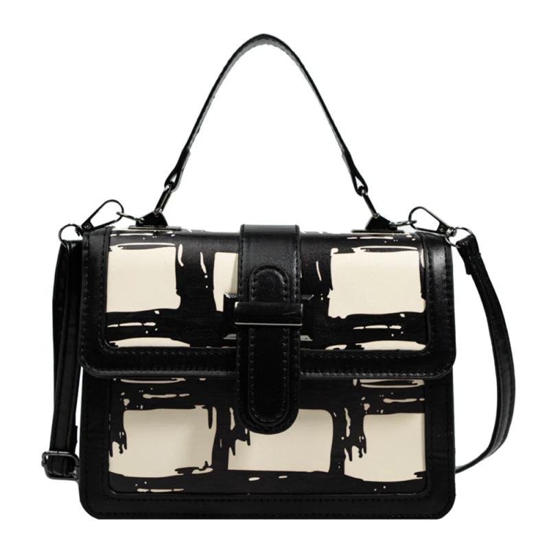 Stay stylish and organized with this vintage-inspired square shoulder bag. Made of PU leather with a contrast design.