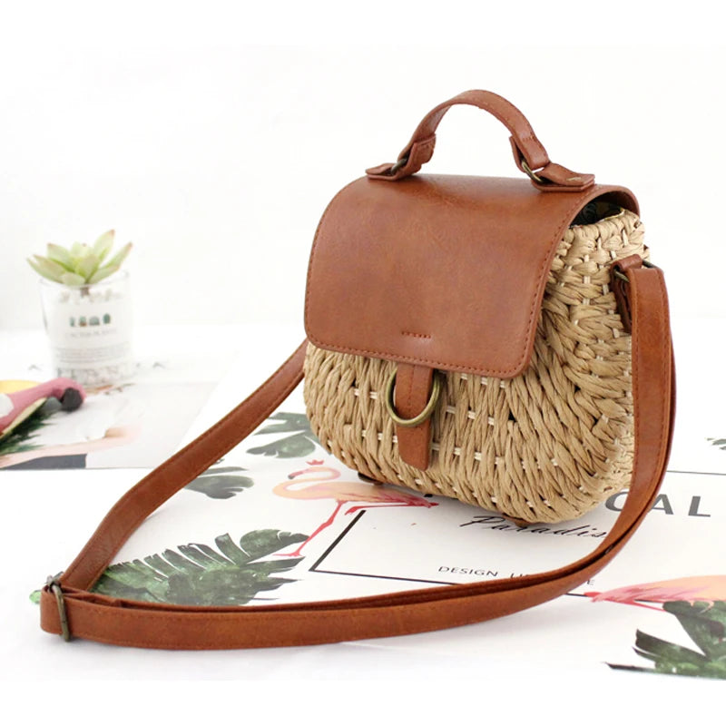 Vintage Straw Bag Pig Crossbody Beach Bag Casual Weaving Handbags