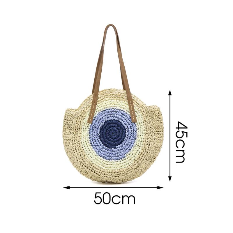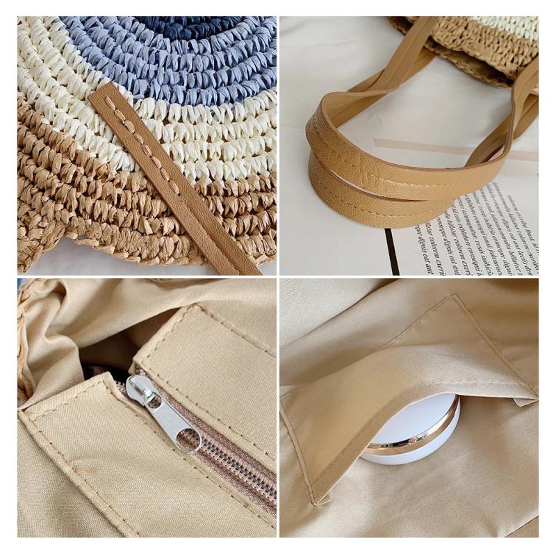 Vintage Straw Bag Round Rattan Bags Summer Beach Ladies Circle Shoulder Bag
