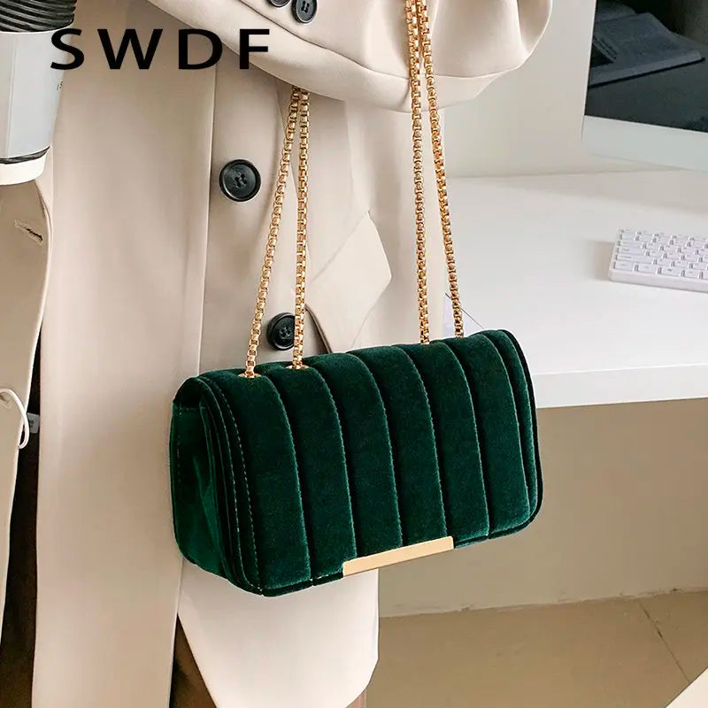 Vintage Velvet Shoulder Bag Small Satchel Crossbody Tote Golden