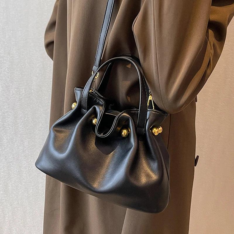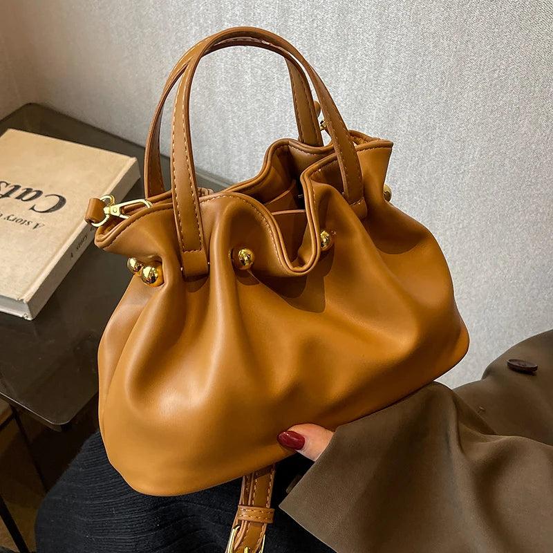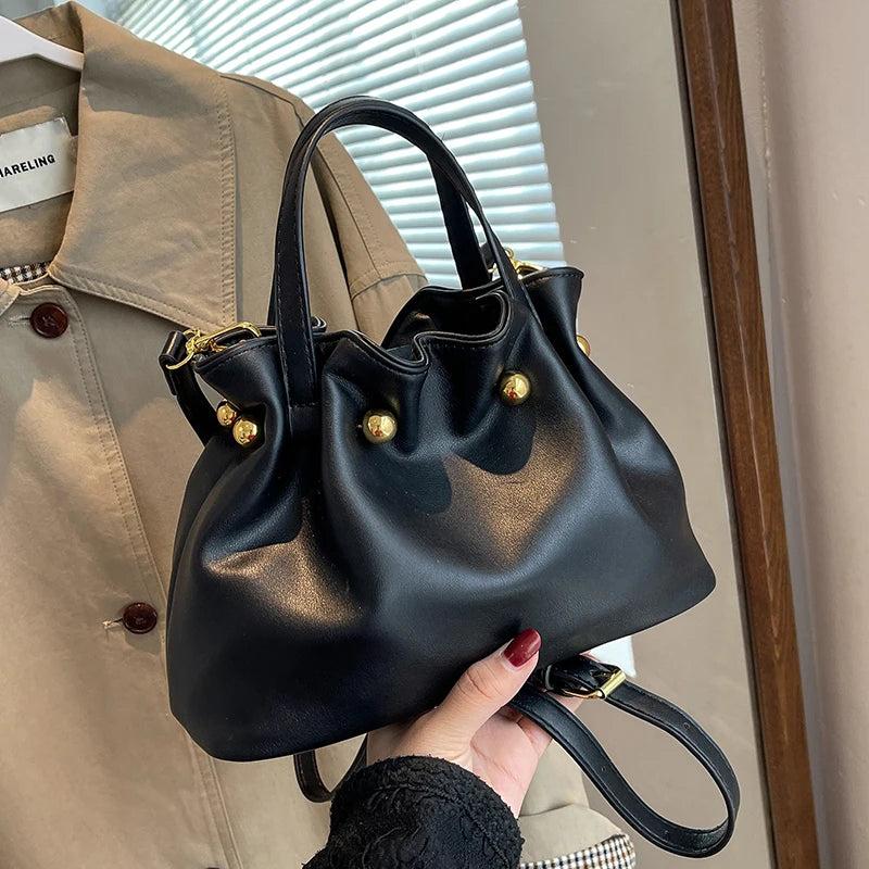 Elevate your style with this vintage woman bucket bag that doubles as a tote and mini purse. It's perfect for everyday use and features a lady shoulder bag design.