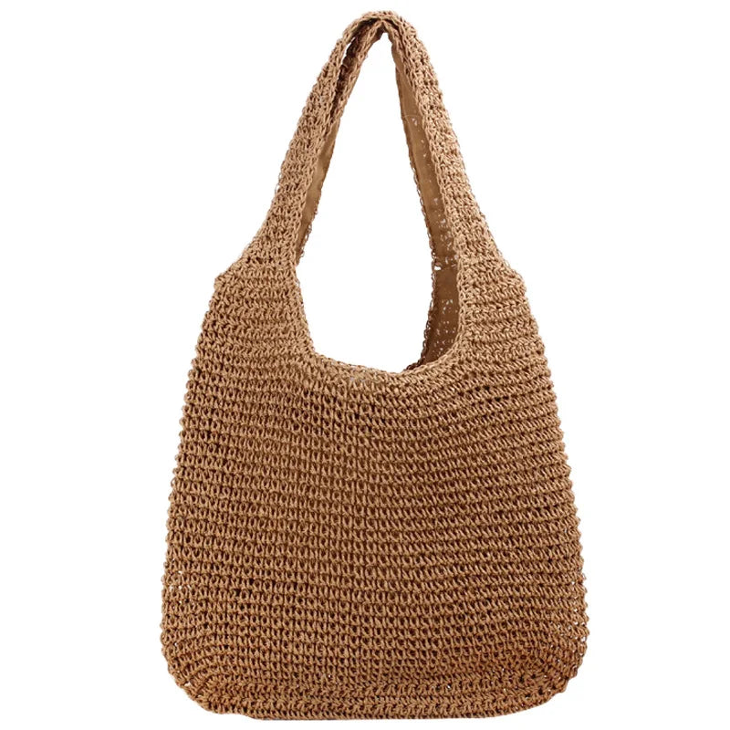 Vintage Woven Straw Beach Bag Shoulder Handbags Large Capacity Summer Tote